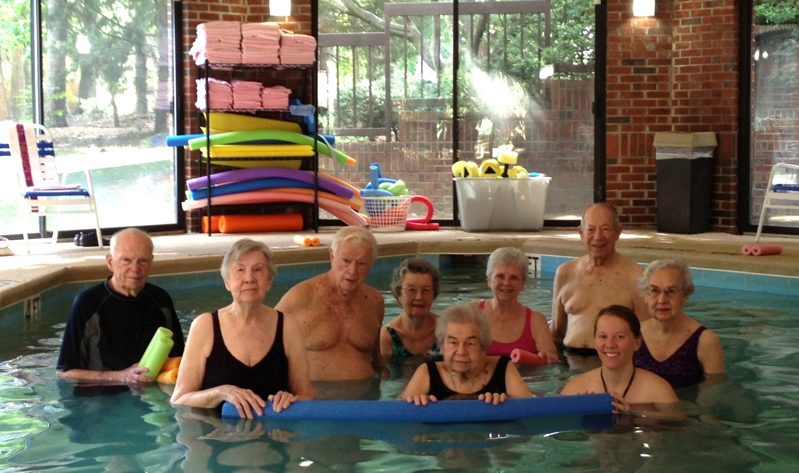 Swimming is not just for kids or vacationers at the beach. You can find Springmoor residents in the pool Monday through Saturday as they faithfully participate in water exercise. The residents are unique – ranging in age from 77 to 96—and living with various health conditions—ranging from arthritis and osteoporosis to hypertension and spinal stenosis and joint replacements; but they have one thing in common – they love to exercise in the water!